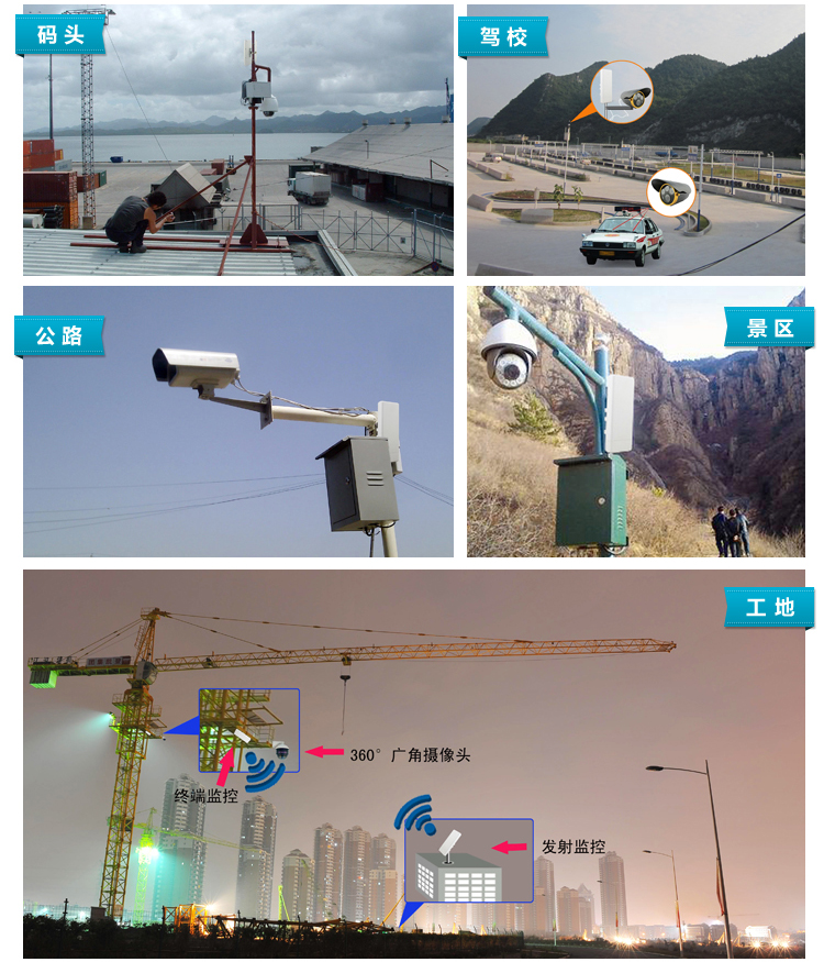 随着传输技术和计算机技术的发展,数字化的视频传输应用得到广泛普及,鉴于工地环境不适合布线等特殊要求,在建筑工地安全监控系统中引入数字化3G无线网络视频监控系统也是大趋势。 对建筑工地各出入口、加工场、塔吊、项目指挥中心、通道监控、仓库监控、工人宿舍、停车场、围墙等建设高清视频监控系统,可以直观的了解建筑工地现场各区域的详细状况,跟踪生产进度,检查工人的工作状态。重重要的一点,是可以提前发现安全隐患及时处理,从而最大限度的确保工人的安全,减轻灾难带来的损失。我们针对以上涉及区域所选配的监控设备及相应监控效果细述:
